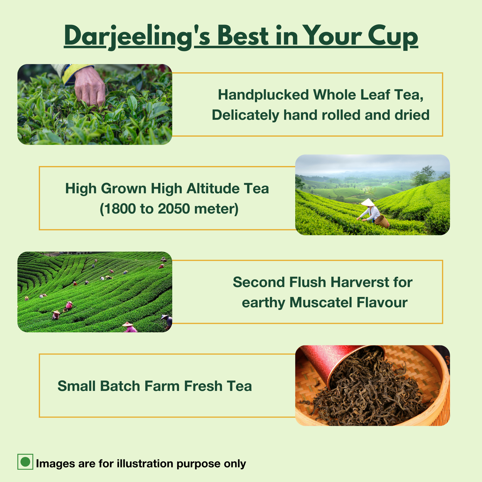 Darjeeling is grown only in Himalayan estates, with unique floral-muscatel notes.