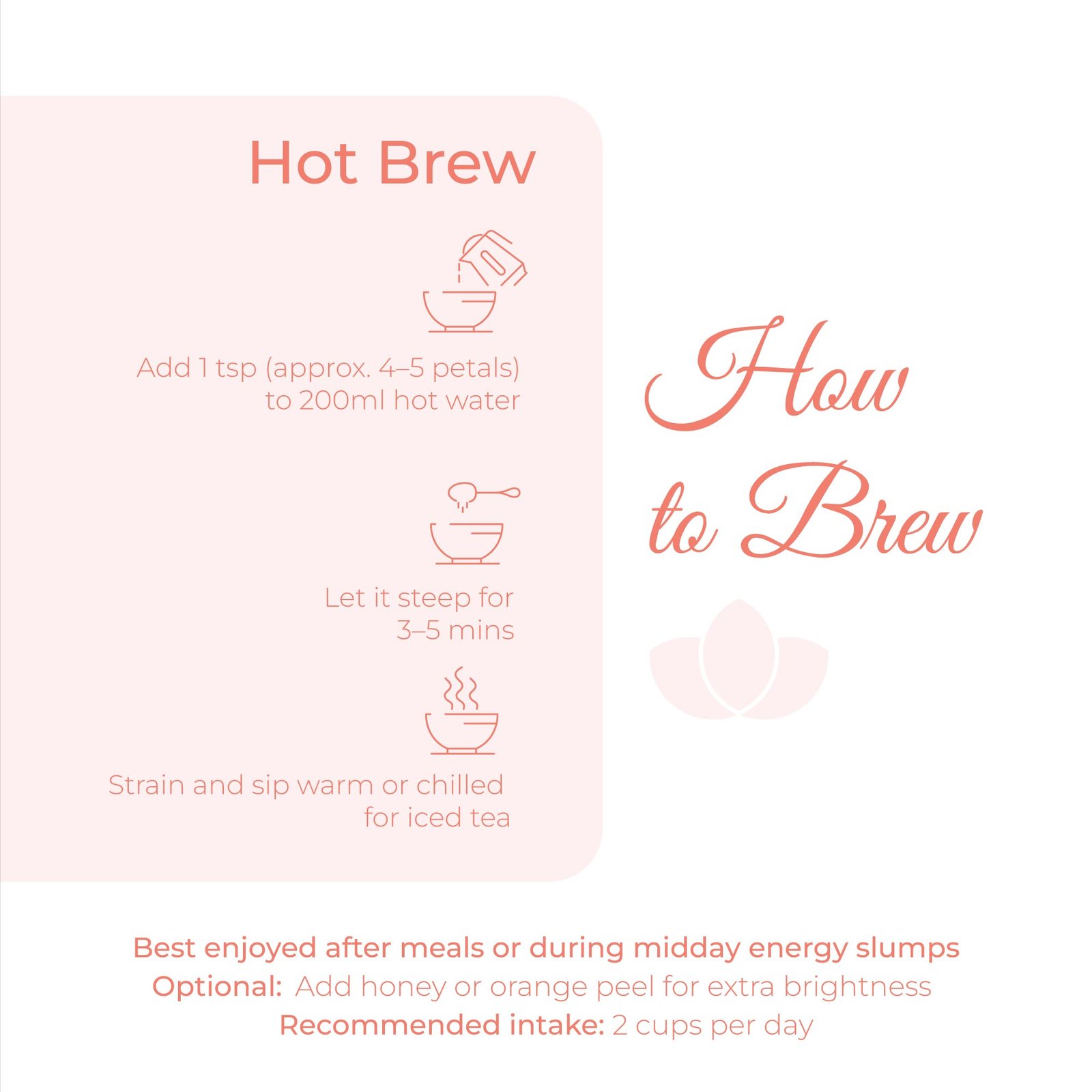 Add 1 tsp hibiscus petals, cover & steep 5–7 minutes